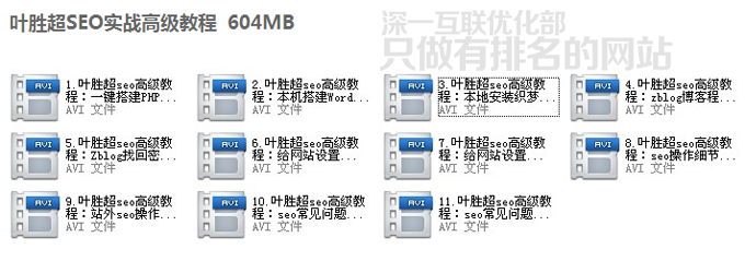 深一優化部seo教程包總共包括17套完整SEO視頻教程 分別是: